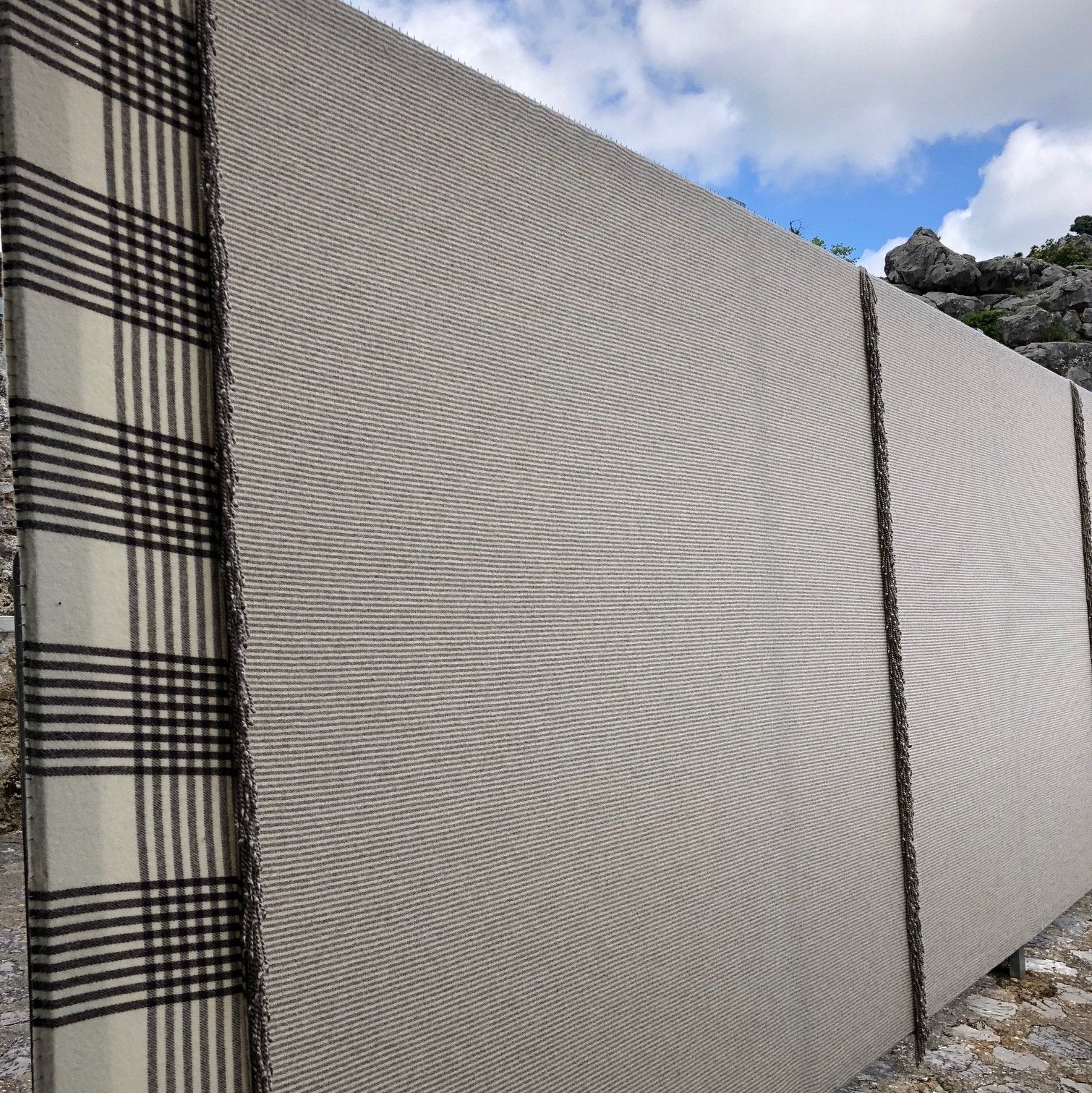 The warp is prepared - normally sufficient for twenty blankets - according to the design and size required. Once in place on the loom, weaving begins, leaving a space between each blanket. The loose threads between the blankets are then hand twisted to make the fringes which are characteristic of Grazalema blankets. Each fringe consists of a specific number of threads plaited together and with a knot at the end in a manner unique to Grazalema. This detail alone gives some idea of the care that goes into the manufacture of their blankets.