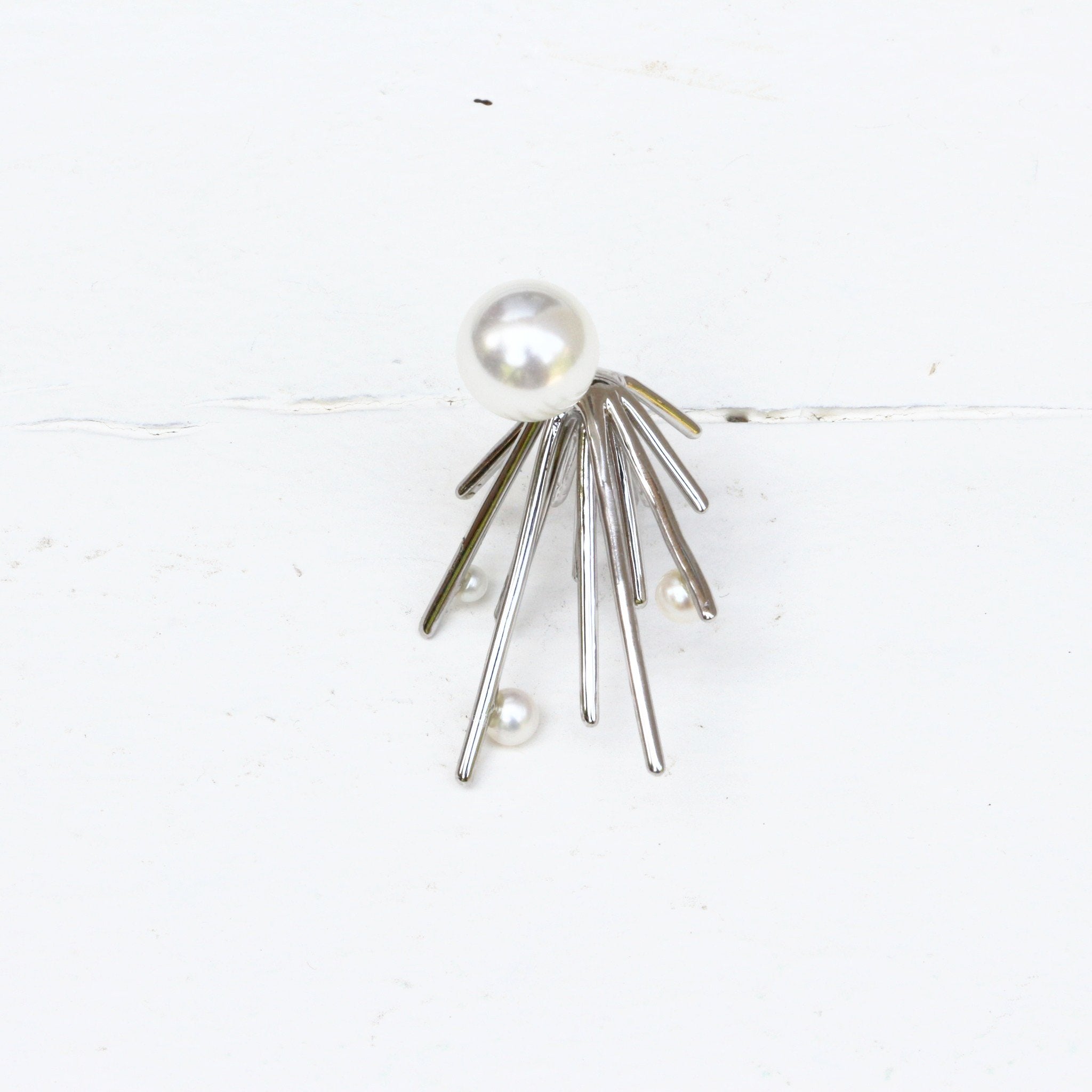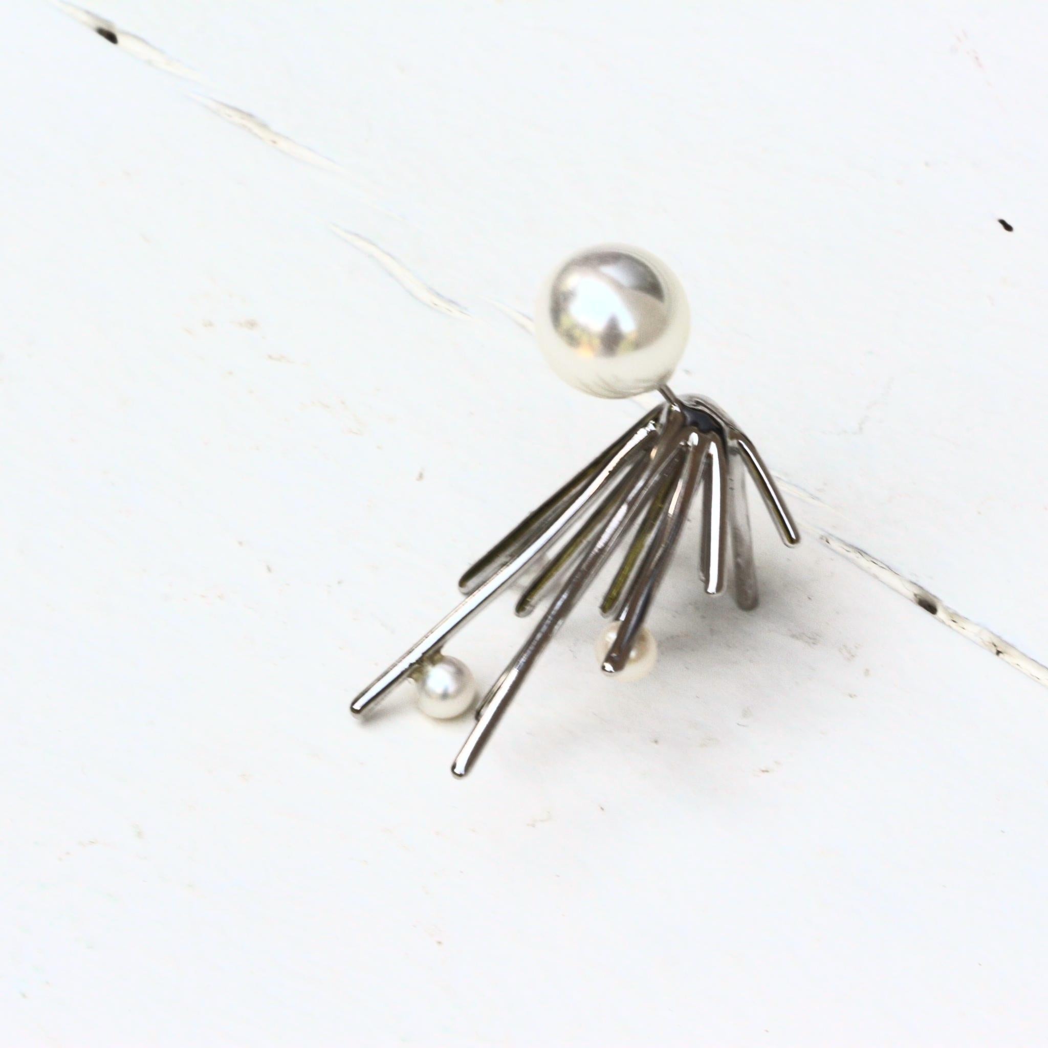 - Rhodium coated Silver 925 + Freshwater pearls earring / Surgical stainless post / Plastic catch