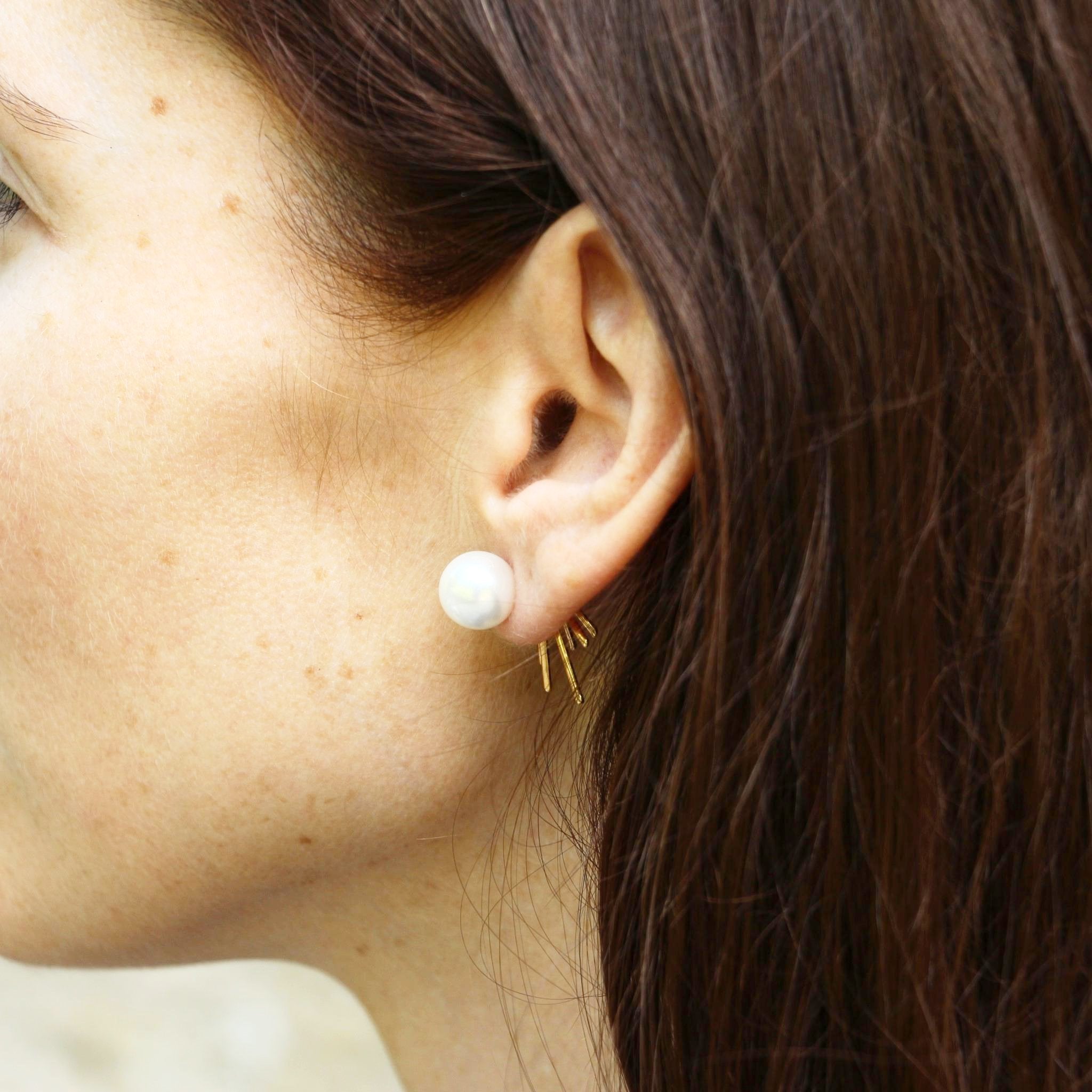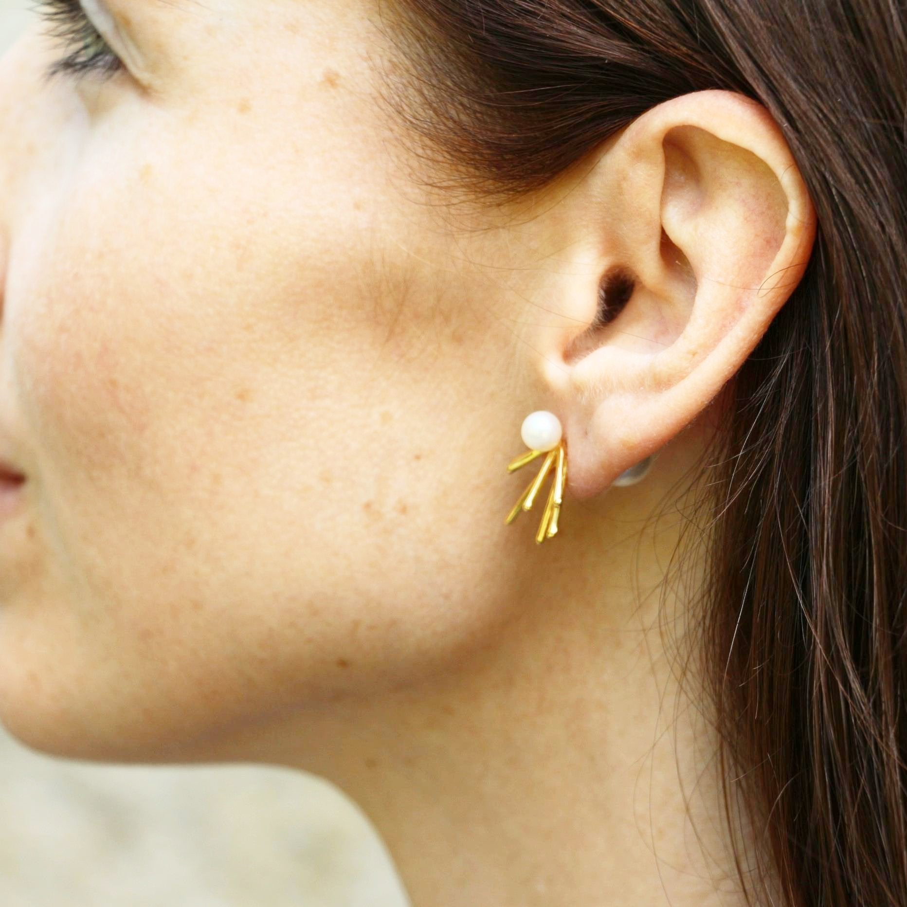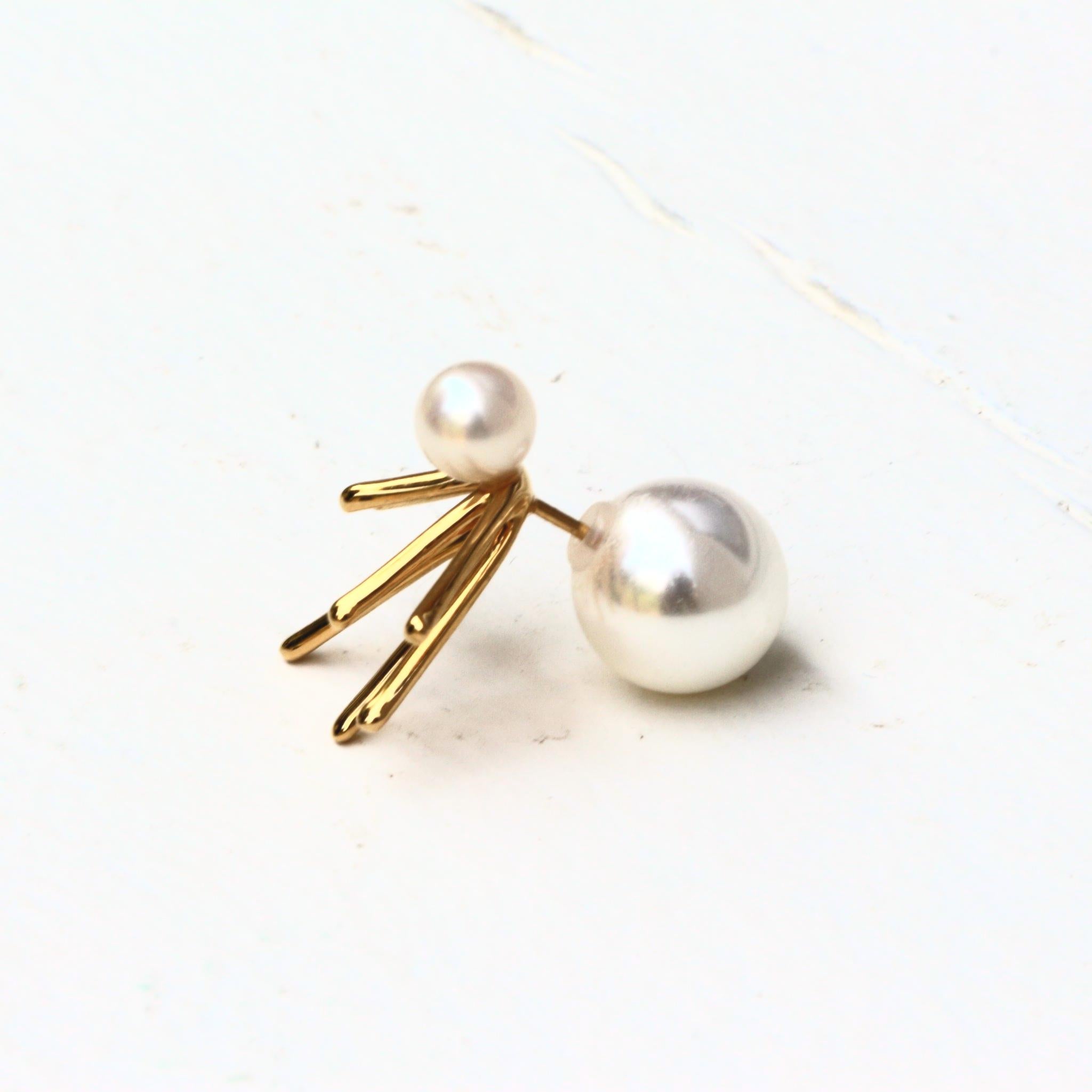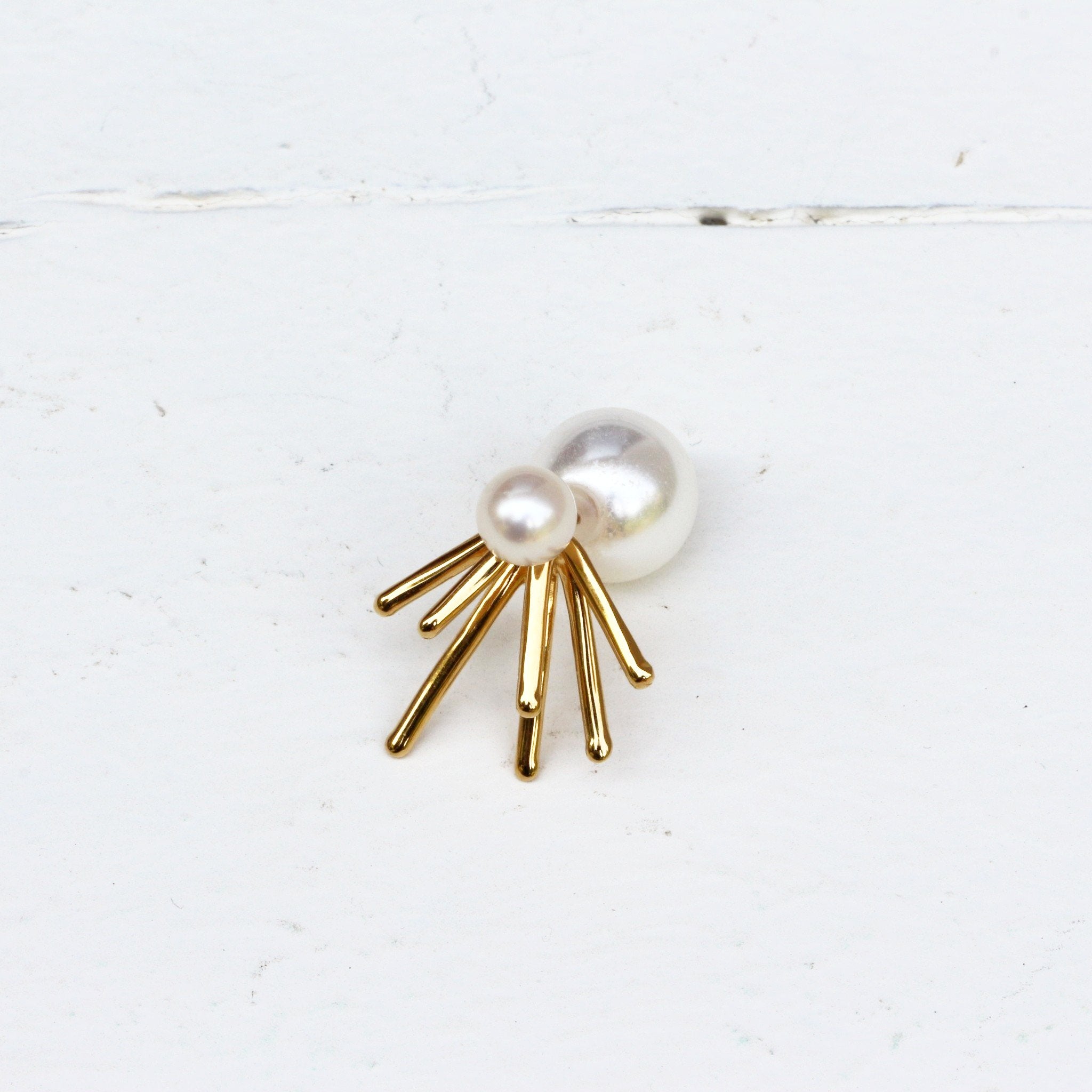 Why not standing out from the crowd wearing a little abstract sculpture like an art object as earring ?!!! The LAMIE brand, only distributed in Japan and Asia so far, was the first brand to be curated for the A BELLULA e-shop. Made all by hand and one by one, each earring is unique and precious. Four freshwater pearls have been left delicately on the structure which evokes a comet.