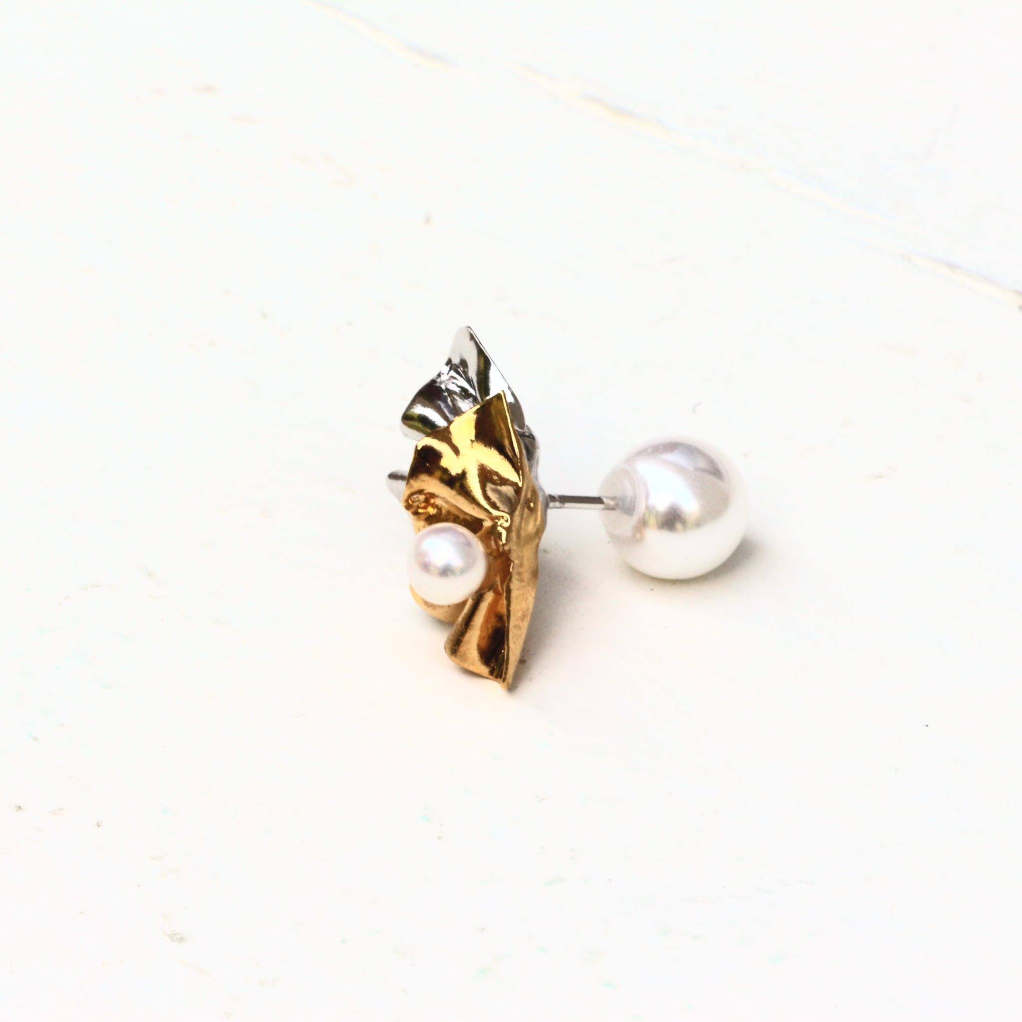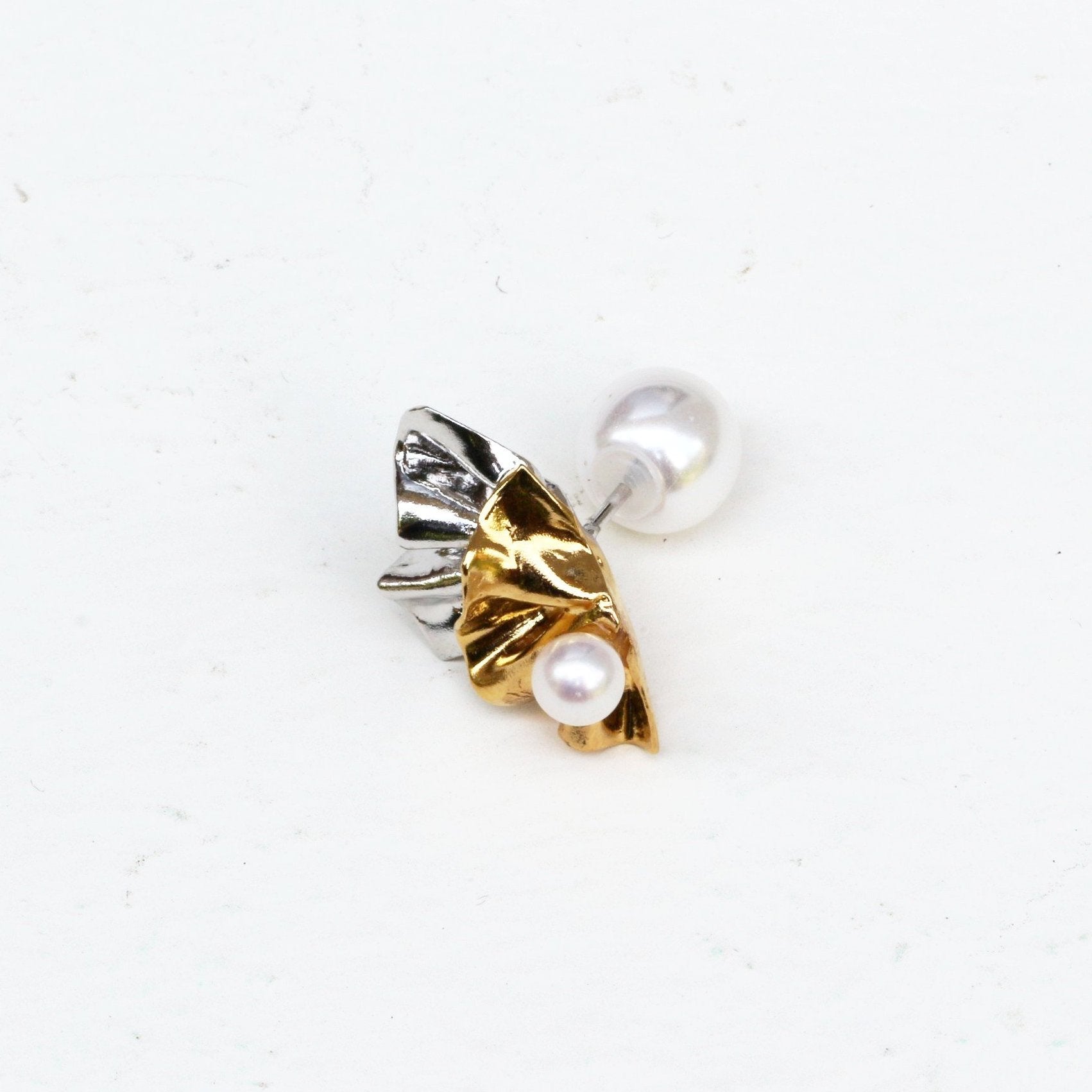 Why not standing out from the crowd wearing a little abstract sculpture like an art object as earring ?!!! The LAMIE brand, only distributed in Japan and Asia so far, was the first brand to be curated for the A BELLULA e-shop. Made all by hand and one by one, each earring is unique and precious. You can rotate this one of kind earring to obtain the best look. A freshwater pearl has been left delicately on the ruffled metal structure. Also exists in a bigger version.