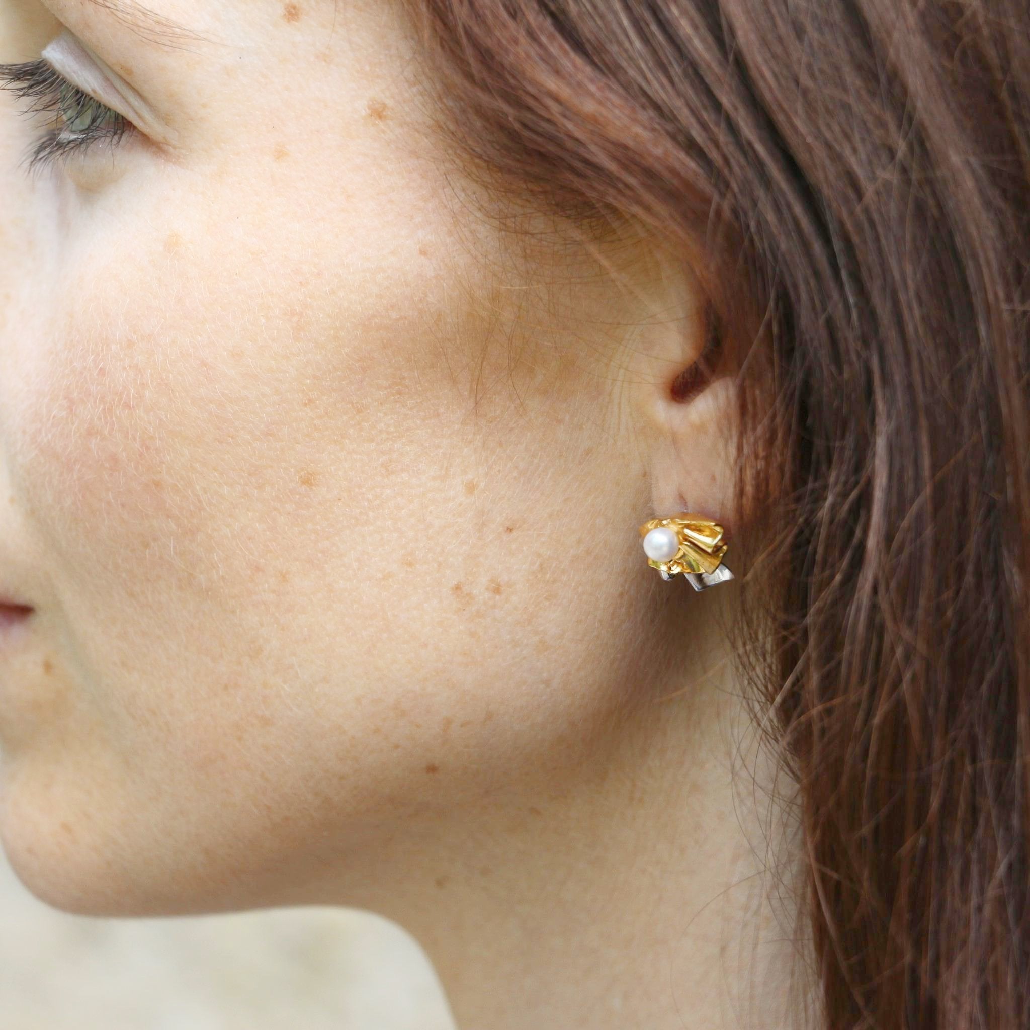 BOUCLE D’OREILLE PM FROISSEE AVEC PERLE DE CULTURE / SMALL RUFFLE MIX EARRING WITH FRESHWATER PEARL