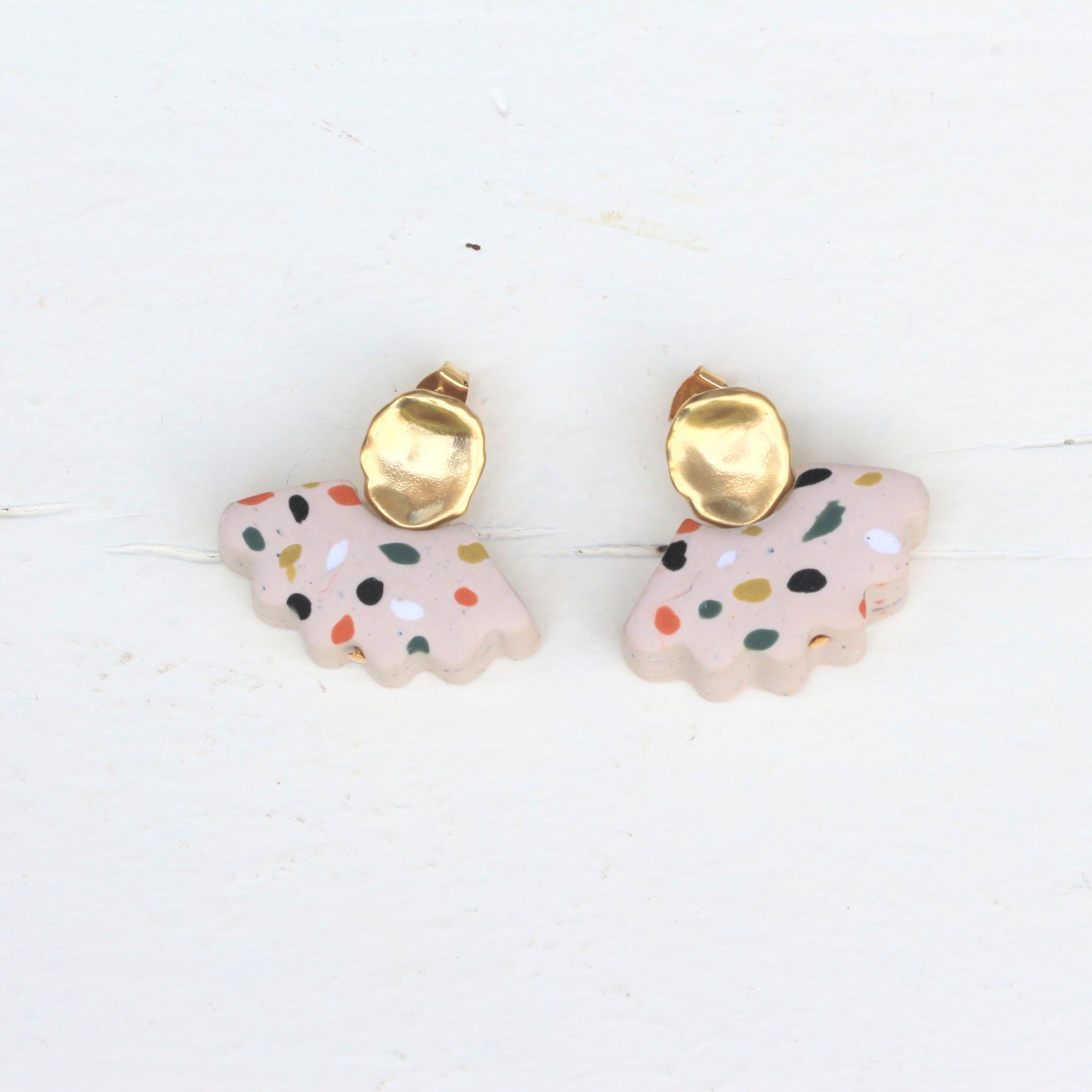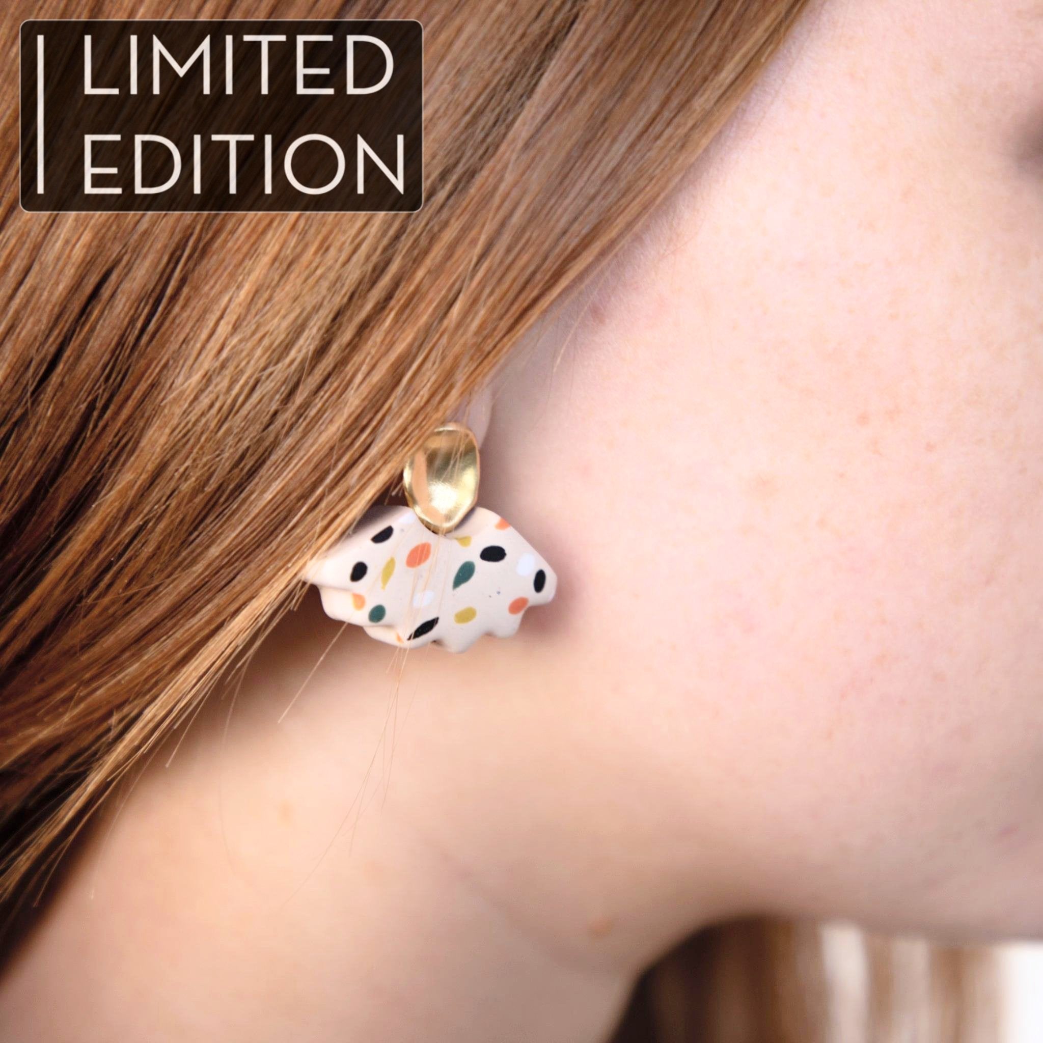 Julie, the brilliant AACUTE designer, has specifically designed this limited edition for A BELLULA, from her «CURVE» earrings style. This version is inspired by the Terrazzo or Granito decoration trend, with a subtile mix of colours and a matte finishing.