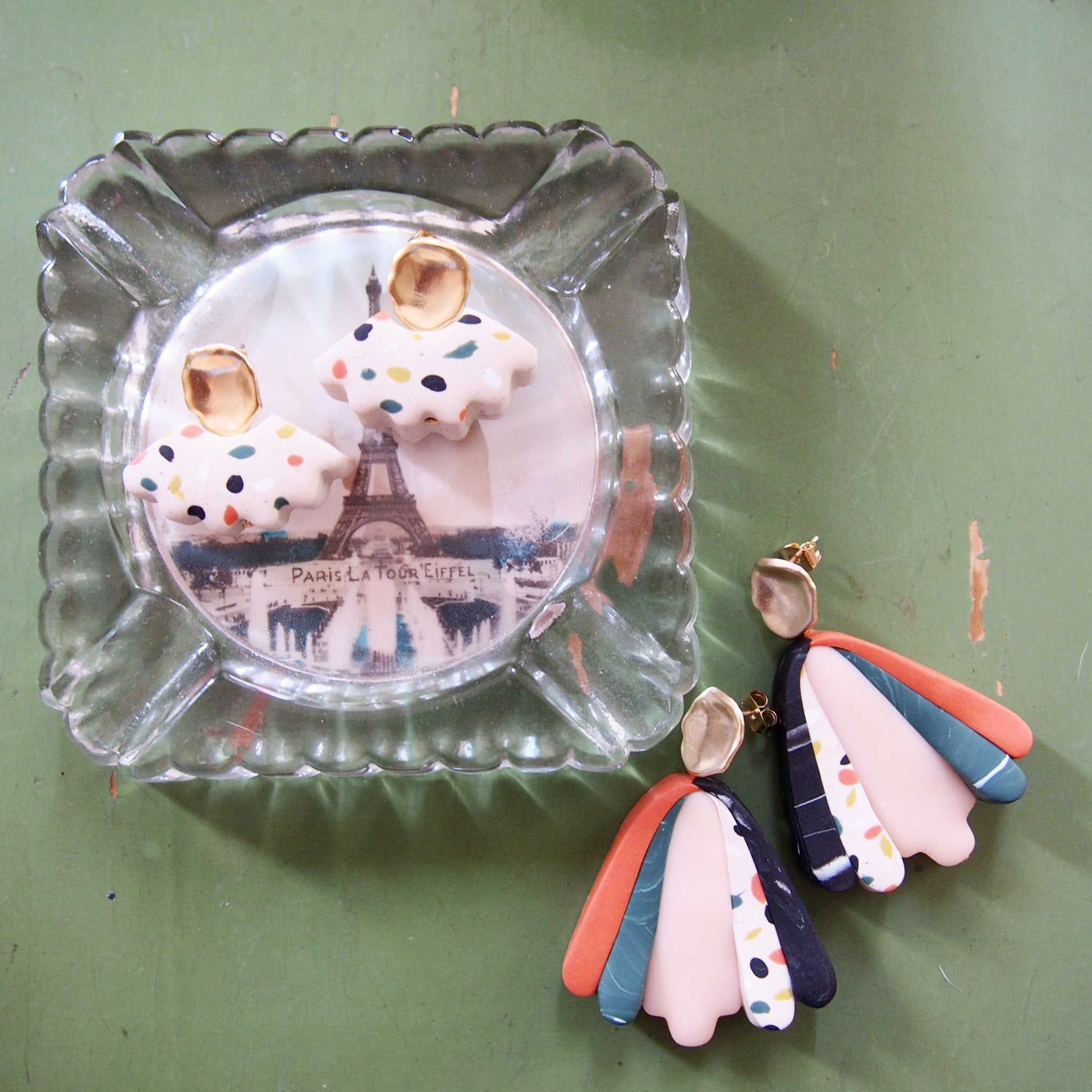 Julie, la créatrice talentueuse d’AACUTE, a créé tout spécialement pour A BELLULA une édition limitée à partir de son modèle de boucles d’oreilles «CURVE». Cette version s’inspire de la tendance déco du Terrazzo ou Granito, avec un jeu de couleurs subtiles et une finition mate.
